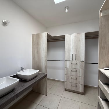 Cuenta con cocina en madera con alacenas, cubierta de granito y equipada con parrilla, campana y microondas. Todas las recámaras y el estudio incluyen clóset, minisplits y acabados de calidad.